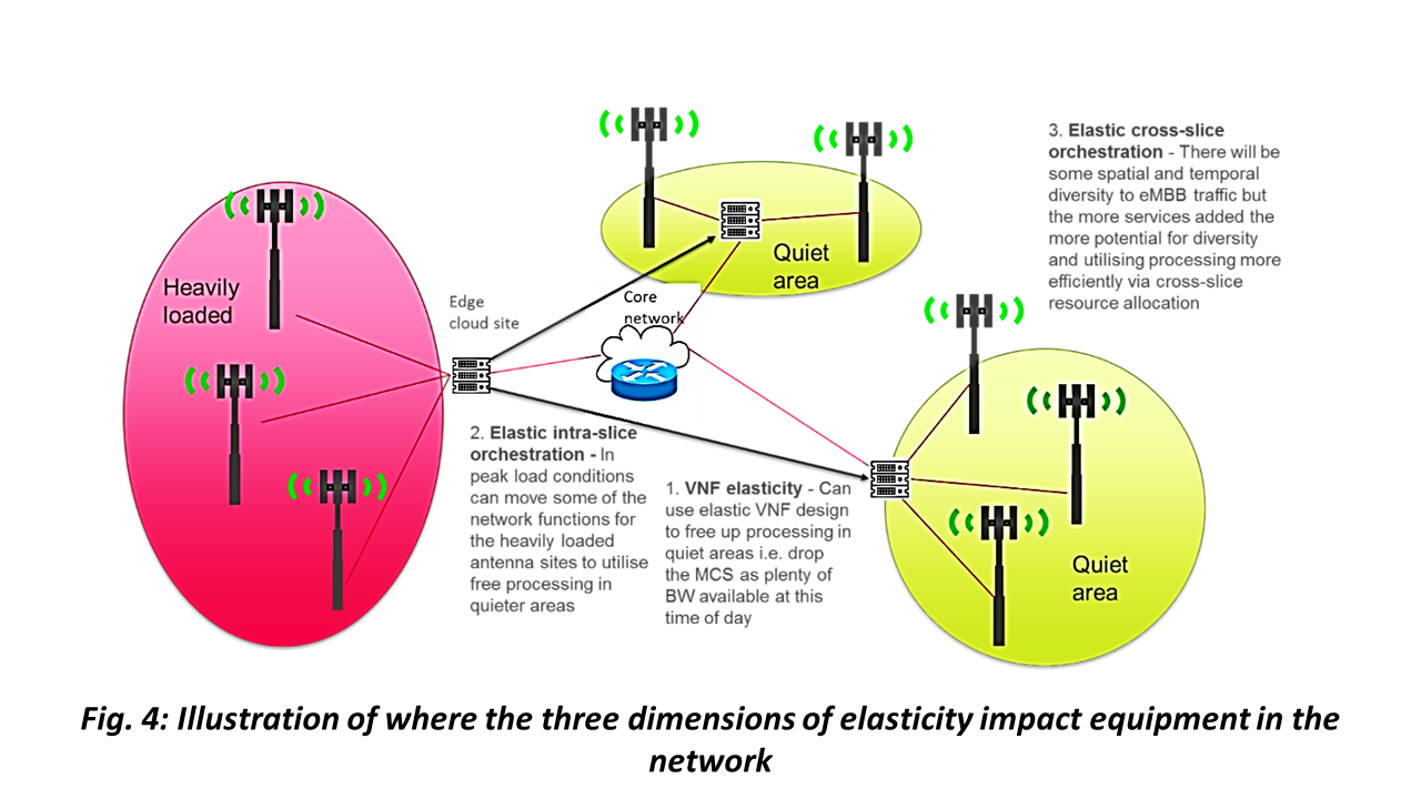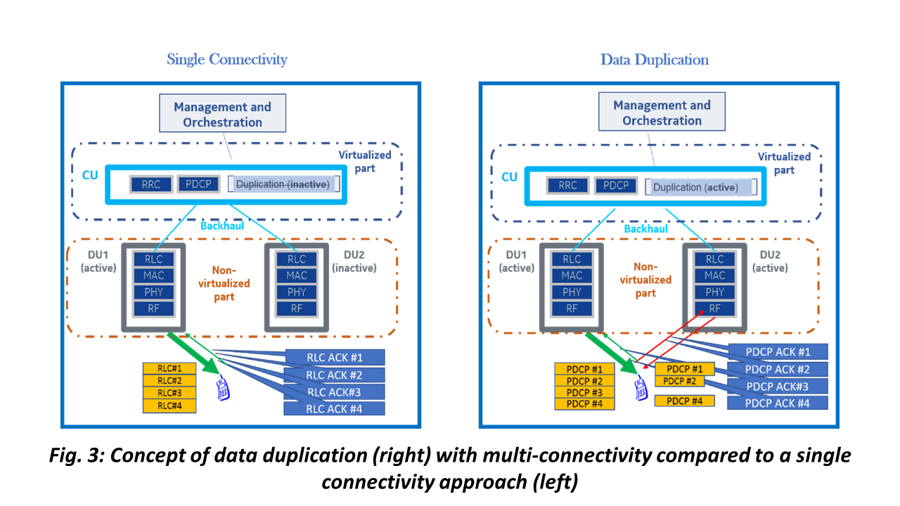 Second key result has been the development of the features for industry and M&E use cases. The industry use case focused on features to achieve failsafe and secure network operation through: i) high RAN reliability by implementing full data duplication (Fig. 3) and network coding techniques; ii) telco cloud resilience through cognitive fault identification and mitigation, robust network controllers and the 5G islands concept for autonomous NF migration; and iii) security through E2E threat analysis and the security trust zones concept. The M&E use case focused on AI and ML based features to achieve computational resource flexibility and efficiency in edge and central clouds (Fig. 4) through: i) computational elasticity providing graceful resource scaling based on load, through computational resource-accounting VNF design; ii) orchestration-driven elasticity for VNF scaling and placement reflecting NF interdependencies; and iii) slice-aware elasticity for E2E resource allocation across different slices exploiting multiplexing gains.