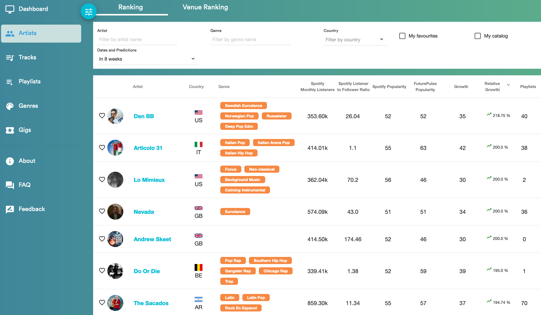 FuturePulse will constitute a significant leap of progress in music consumption and distribution, since it is the first project to integrate a number of different signals from both online and physical audiences, with the goals of optimizing music selection and distribution, and creating value for a number of actors in the music ecosystem.