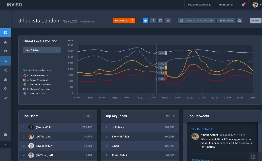 To detect propagation of terrorist beliefs, intelligence analysts need an intuitive solution to pinpoint radical content and potential radicalisation processes from huge, live and fast-moving social data of disparate media types and sources. This need is relatively new, and it yet has to be met by existing solutions. LEAs all over the world are beginning to take social data seriously, and started to incorporate intelligence gathered from social sources into their investigations as well as surveillance and prevention operations.