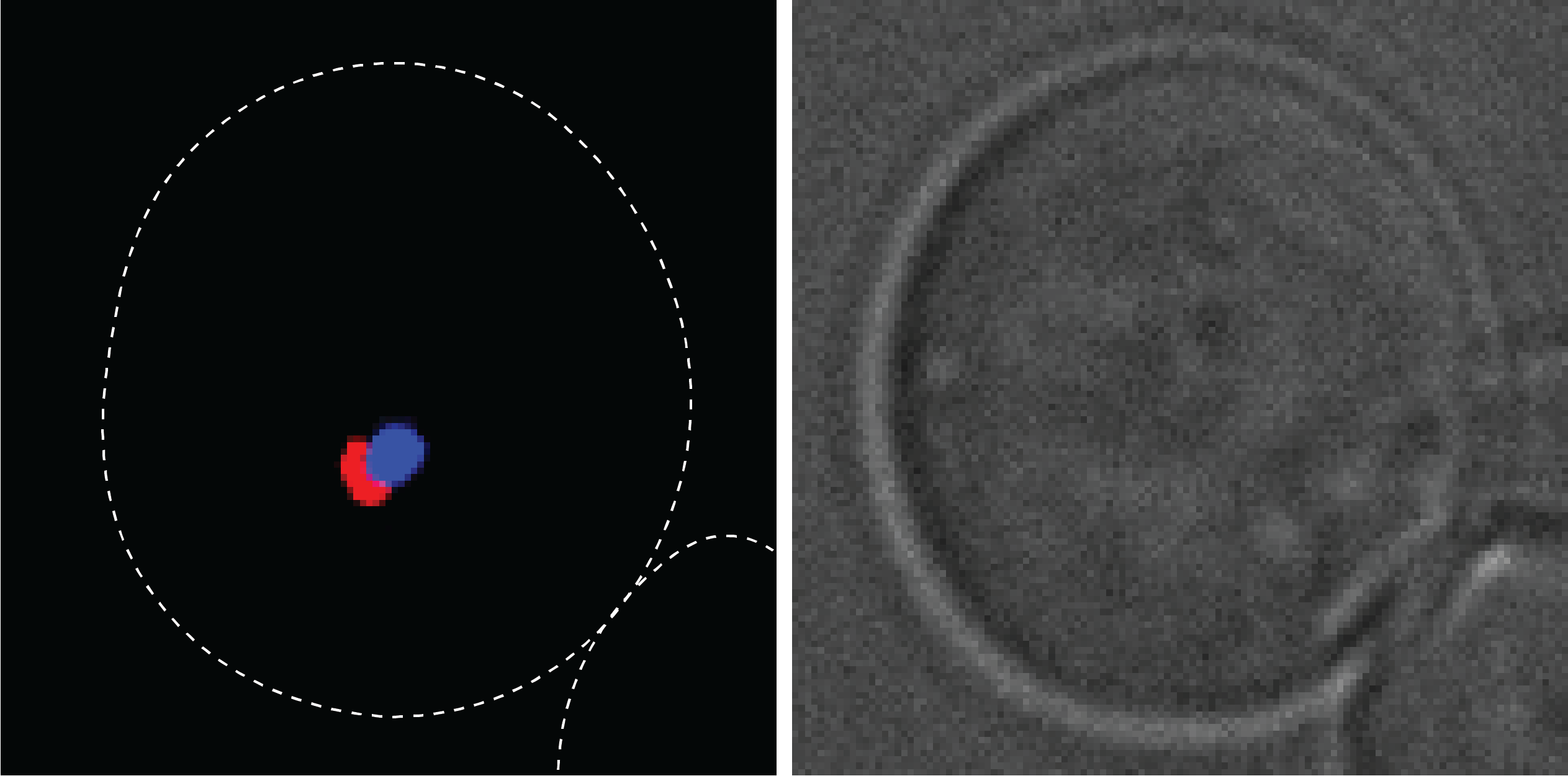 Yeast cell in which cargo ("waste", in blue) is packaged by an autophagosomal membrane (red).