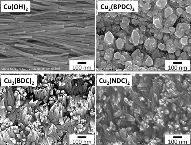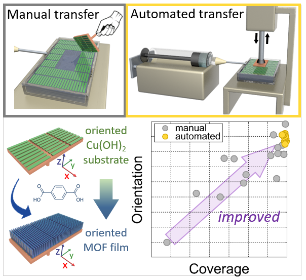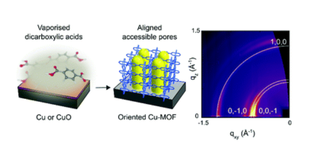 b) the understanding of the key compositional variables for an optimized conversion from Cu(OH)2 NBs to aligned Cu-based MOF crystals. This investigation allowed us to develop protocols for 12 heteroepitaxially oriented MOF film systems. Selected outcomes: Chem.Sci. 2020, 11, 8005; Advanced Materials 2023,35, 2211478; Adv. Mater. Interfaces 2023, 10, 2202461; Chemical Science 2023, 14, 12056; Advanced Materials 2024, 2309645.