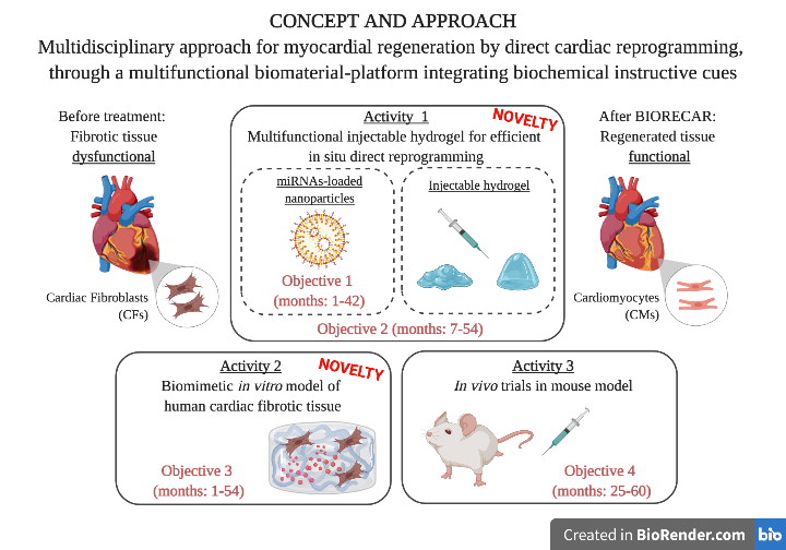 Additionally, beyond post-myocardial infarction treatment, BIORECAR approach could treat other forms of acquired or inherited heart disease associated with fibrosis, further increasing the project impact.