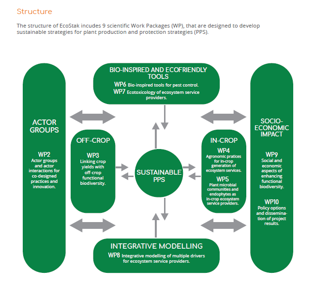 Agroecosystems, though managed artificially, rely on ecosystem services provided by various organisms for pest control, pollination, nutrient recycling, and biodiversity conservation. The EcoStack project aims to enhance the sustainability of crop production systems in Europe by optimizing biodiversity management and utilizing bio-inspired tools for crop protection.