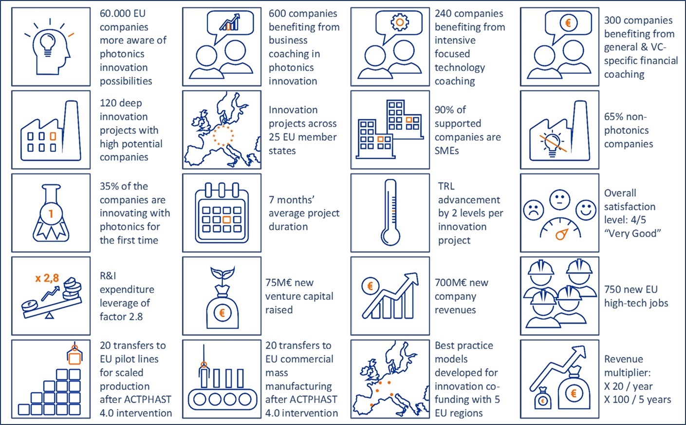 • In addition, ACTPHAST 4.0 also maximised its impact on the wider deployment of cutting-edge photonics technologies by European industry through its focus on first users, given that: