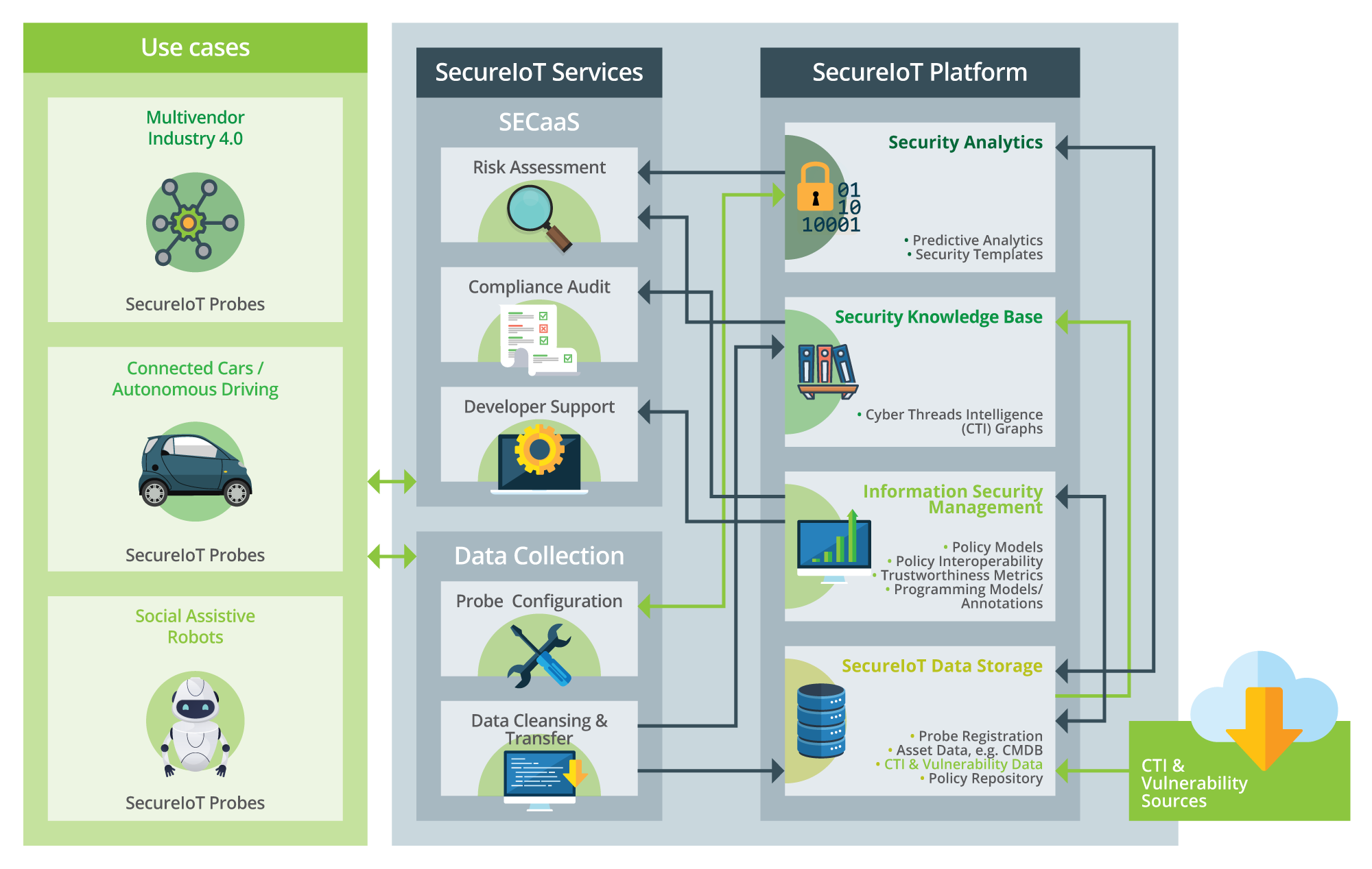 • Implement and Provide Open SECaaS (Security-as-a-Service) services over the SecureIoT framework, including Security Risk Assessment, Security Compliance Audits and Developers’ Support