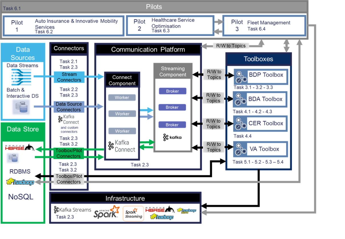 -Creation of a highly scalable interoperable Big Data platform for streaming and at rest data. The platform is able to interface with all required database systems and has an easy plug-and-play approach to integrating toolboxes