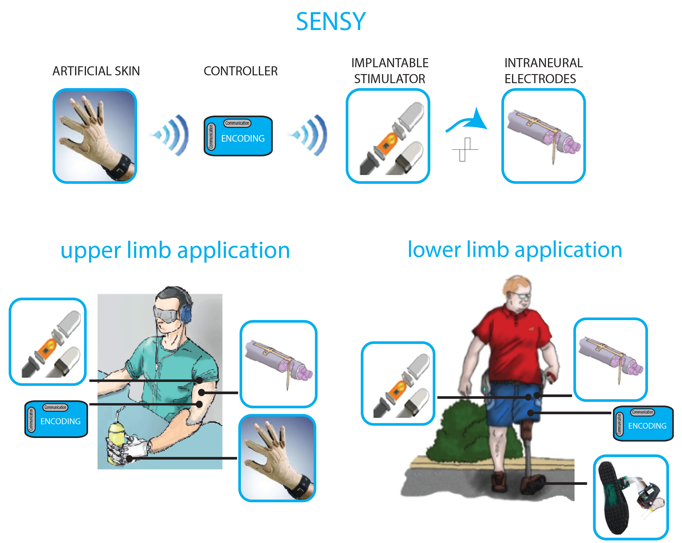 There are an estimated 3.18 million lower limb amputees in the EU with a further 295,000 amputations performed annually. Lower limb amputees do not have sensory feedback from their currently available prostheses and therefore do not feel it as part of their body. This results in falling risks with consequent lack of confidence in the prosthesis and then reduced mobility, increased fatigue (with consequent health complications), phantom limb pain, low prosthesis acceptance and consequent abandonment, and reduced quality of life. SensArs has developed SENSY, a disruptive system that restores the complete sensory-motor link between peripheral and central nervous system in lower-limb amputees. SENSY enables prosthesis users to feel their prosthesis as part of their own body. Having had their senses restored, users reduce the risk of falling, overcome phantom limb pain, and improve their overall quality of life. The system has been tested with the first upper limb amputees and now SensArs is adapting it for use by lower limb amputees. SensArs will then perform a preclinical and clinical trial to achieve clinical validation and advance to CE Mark certification.