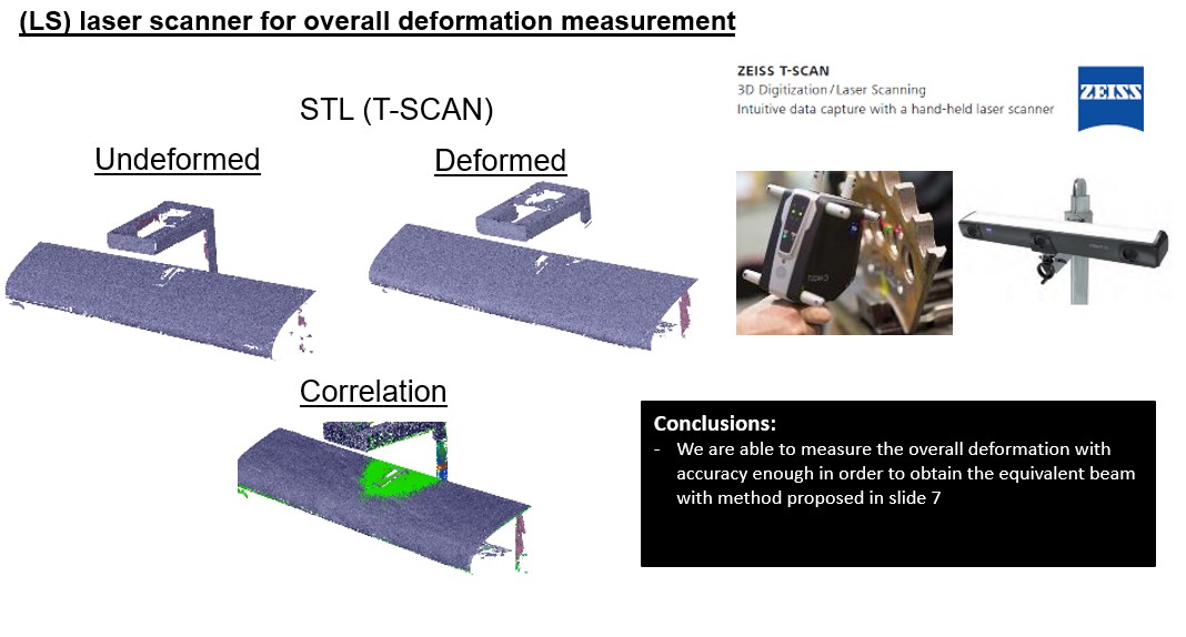 And finally (LS) Laser Scanner technology has been proved for overall deformation measurement. We can measure the overall deformation with accuracy enough in order to obtain the equivalent beam with method proposed.
