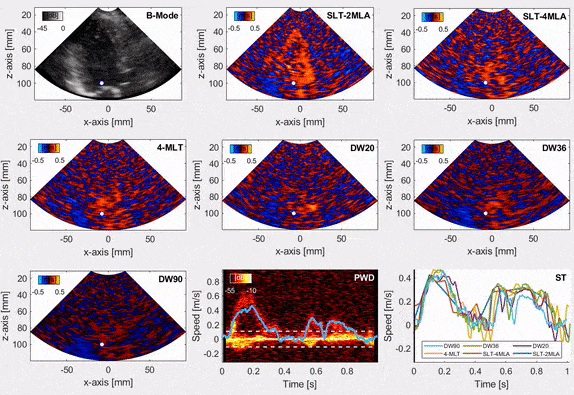 2) Ultrasound signal processing: new processing approaches for color flow imaging and tissue Doppler imaging applications have been developed, demonstrating that blood flow, wall motion, and blood-wall interactions can be studied with unprecedented detail by exploiting advanced image formation techniques.