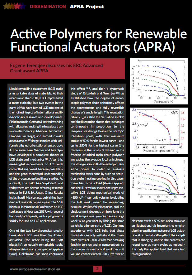 Periodic Reporting for period 4 - APRA (Active Polymers for Renewable Functional Actuators)