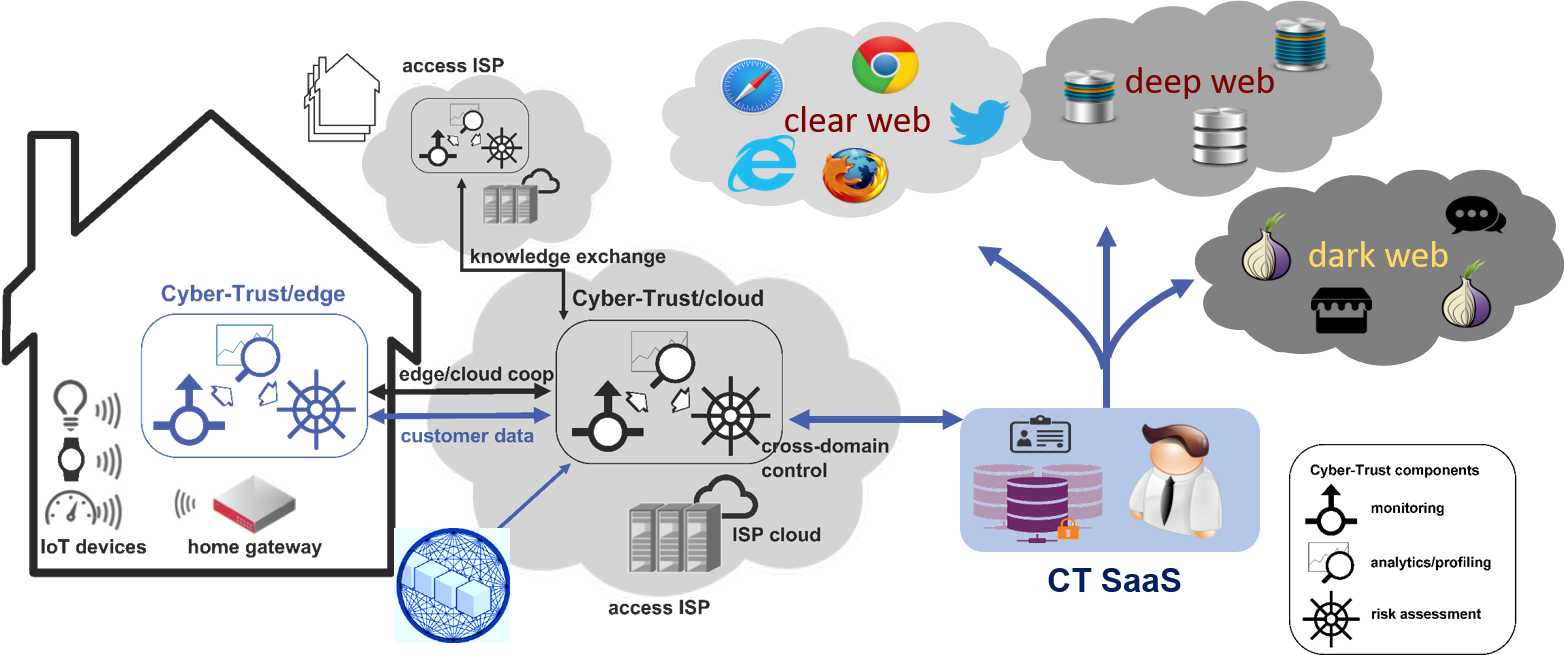 The Cyber-Trust platform, enhances the safety and security of the digital assets of citizens (e.g. Smart Homes, wearable devices, baby monitor, thermostat, mobile devices etc.) and organisation’s infrastructure (e.g. smart building, sensors and actuators).