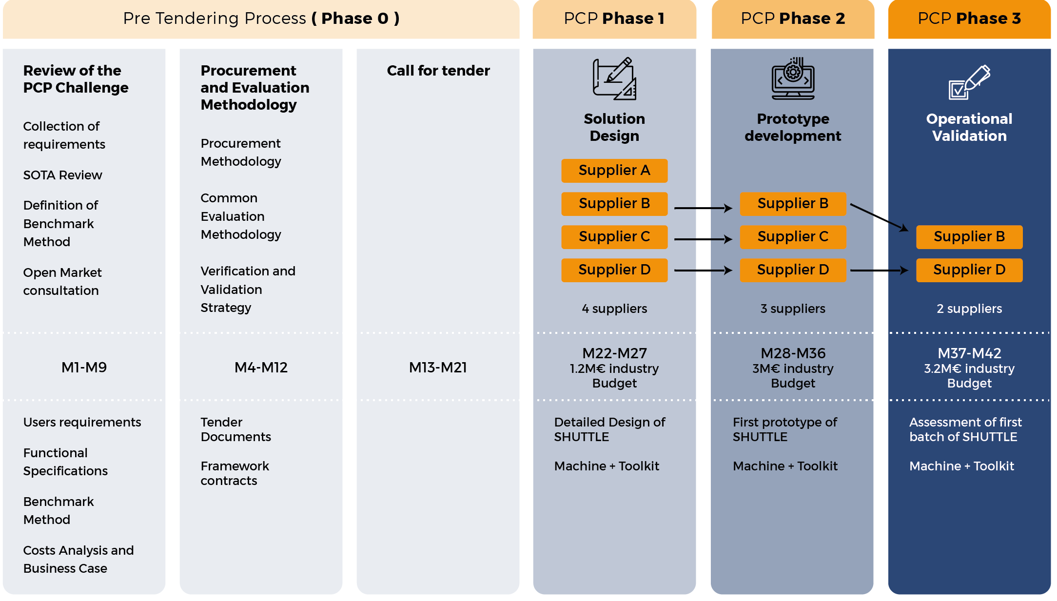 - Documents for call for tenders to execute the PCP were finalised in Year 2, validated by the EC and the Technical and Contracting Boards before release on 20 Sept. 2019.