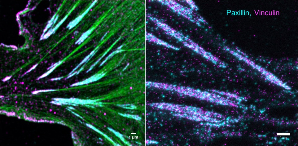 Multi-color super-resolution imaging of adhesion molecules on human fibroblasts
