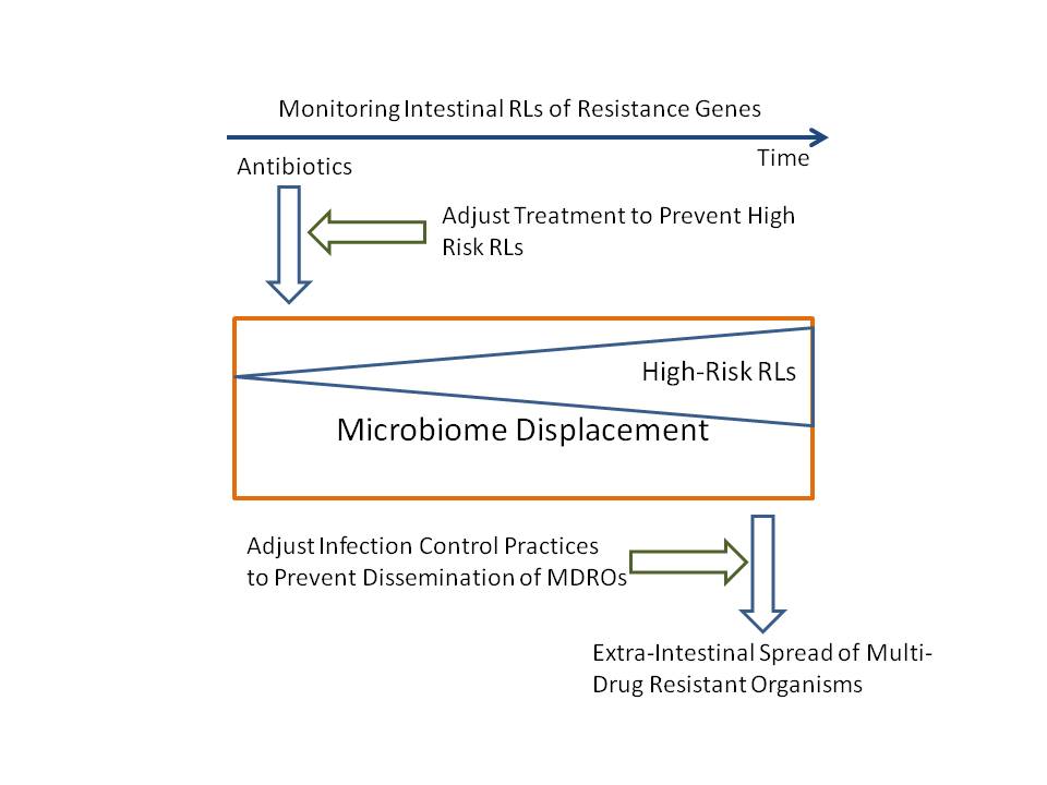 Our data demonstrates the usefulness of the tool developed through qMAR that allows for the tracking of the intestinal RLs of resistance genes over time. This can be predictive of extra-intestinal spread of MDROs that can cause infections and/or play a role in transmission. Monitoring the RLs could allow for healthcare workers and infection control personnel to take pre-emptive measures to minimize the risk on the patient and the spread of MDROs in the hospital.
