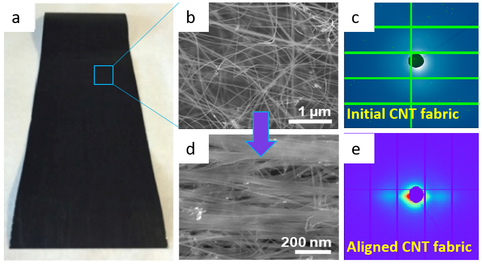 The results include also the developed methodologies to enhance alignment of CNT fabrics and their toughness, as well as methodology to evaluate fracture toughness based on the adapted essential work of fracture method and experimental set-up for in situ X-ray and Raman spectroscopy analysis of the stress-transfer within macroscopic CNT ensembles, which were integrated into manufacturing process of CNT materials at IMDEA Materials Institute and can be further scaled up, as well as implemented in training materials and lectures for materials science and engineering students.
