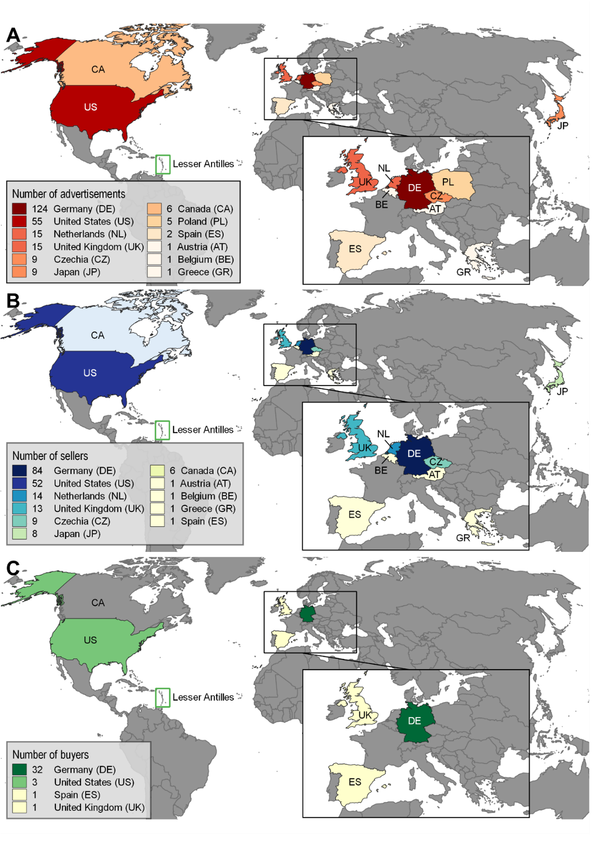 Worldwide, there is evidence of online trade on multiple digital platforms involving multiple species across the Tree of Life. The online wildlife trade also involves species that are at highest risk of extinction. When investigating the magnitude and geographic distribution of global online trade of endemic and range-restricted reptile species from the Lesser Antilles, for example, online trade involved threatened species according to the International Union for the Conservation of Nature Red List and species listed in the Convention on International Trade in Endangered Species of Wild Fauna and Flora (CITES) Appendices. Germany was the country with the highest number of advertisements, followed by the United States, the Netherlands and United Kingdom. Based on data from sale advertisements that included price and currency data, prices ranged from one to over a thousand Euros. Our results also highlight that the dynamics of the online wildlife trade are context dependent. For example, we have examined the spatial characteristics of the songbird trade in Indonesia, using multiple online data sources, including citizen science data, small advertisements from online marketplace platforms, and videos. Data from these digital sources gave rich insights into the spatial, temporal and taxonomic structure of online wildlife trade. We also found that the asking prices on online marketplaces were significantly higher than the prices stated in an independently carried out consumer survey. We also analyzed trade across five digital platforms and species of conservation concern from a global biodiversity hotspot, the Philippines. We identified trade posts focusing on 108 species, 79 of which were classified as threatened. We observed an important proportion of plant-related trade hits. Trade mainly occurred on webpages indexed in Google and on Twitter.