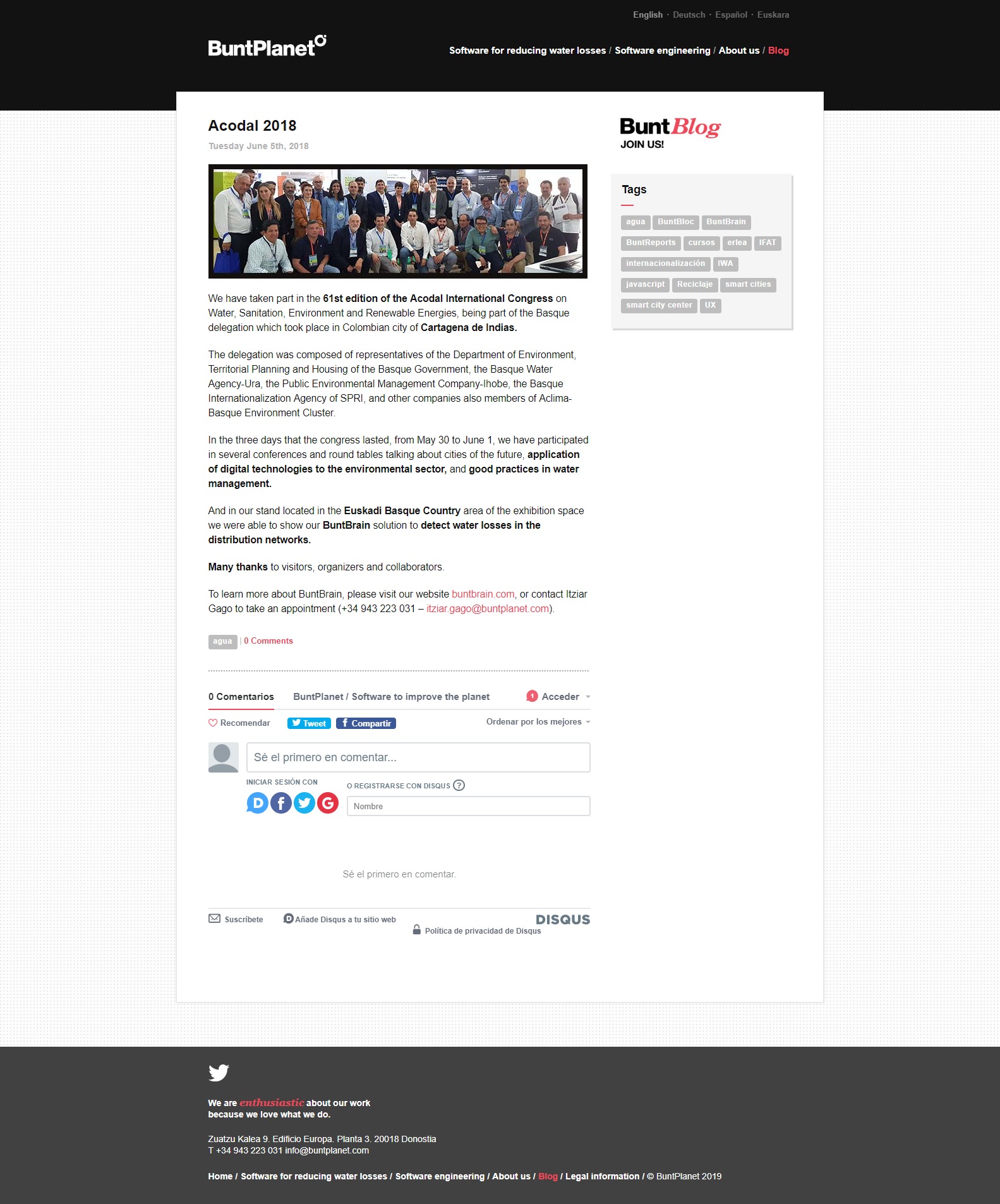 - Events attended: World Water Tech (London, UK), Leakage Summit (London, UK), SES Water (London, UK), SME Welcome Day (Brussels, Belgium), Water Loss (Cape Town, SouthAfrica), IFAT 2018 (Munich, Germany), ACODAL (Cartagena de Indias, Colombia), ACE (Las Vegas, USA), EIC SUMMIT (Berlin, Germany), AQUANOMICS Event (London, UK)