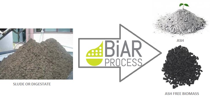 Nowadays, the only method economically viable at industrial level to separate the inorganic compounds from organic compounds is burning. New emerging techniques are arising to reduce the biomass ash content; however, they are at an experimental stage. Due to the low percentages of separation, these techniques are not the solution for the efficient removal of ashes from biomass feedstocks. Moreover, none of these techniques are applicable to the range of biomass waste and residues types such as sludge and agro-forestry residues. As a result, ash-rich biomasses are currently being used ineffectively or still largely disposed. BiAR is the only economically viable process able to convert low value biomass waste and residues into highly value biomass for energetic use and with the lowest environmental impact.