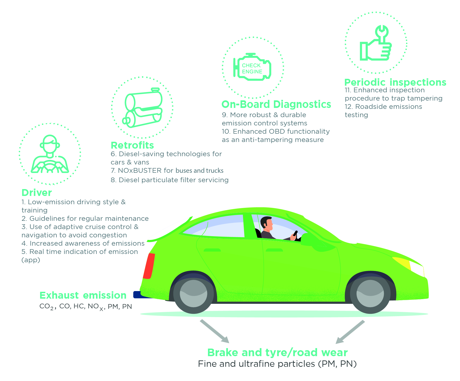 - Understand and correlate driving behaviour with real powertrain (exhaust) emissions and emissions from brakes and tyres, with a focus on Internal Combustion Engine cars and commercial vehicles.