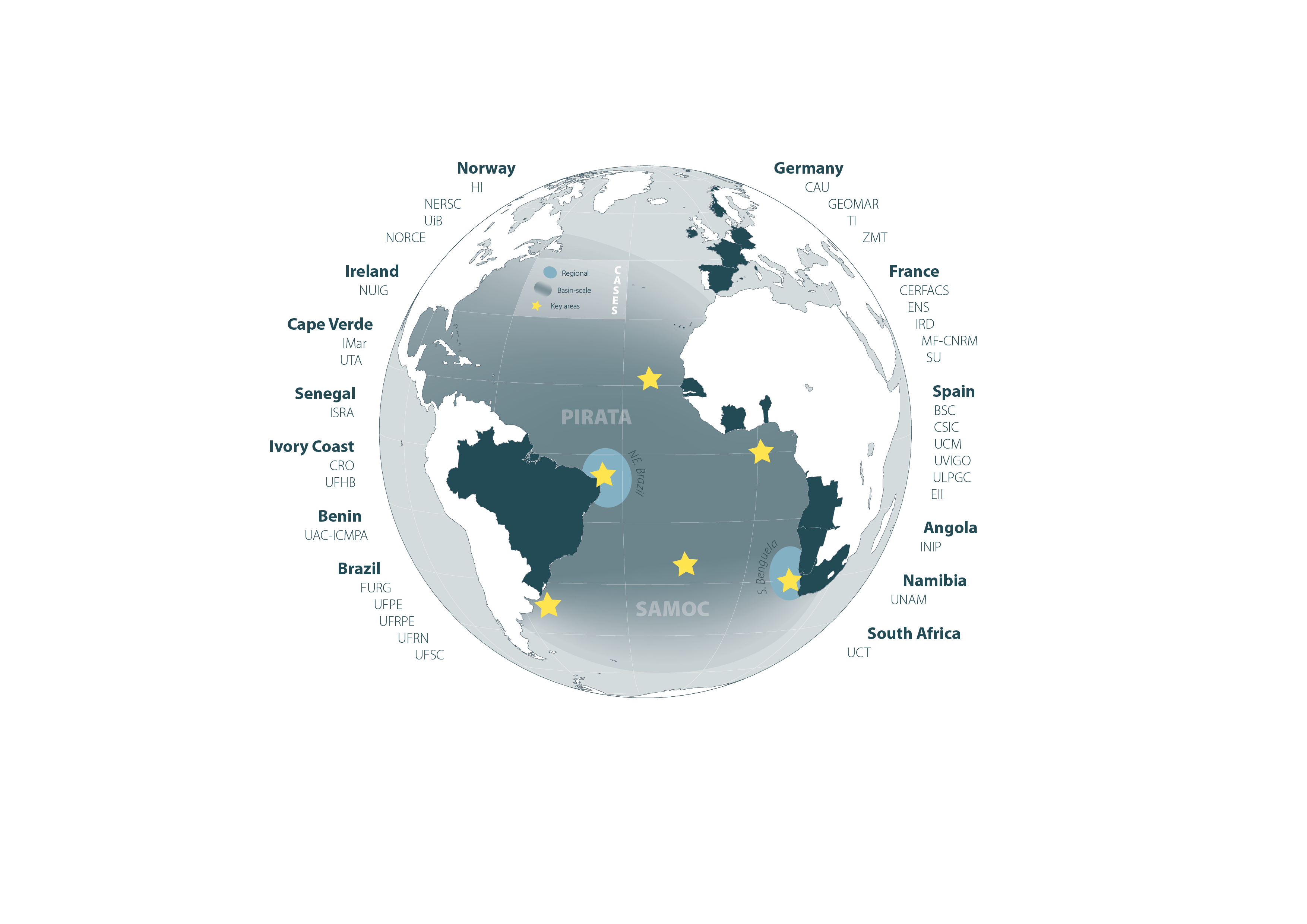Established by TRIATLAS, the Cross-Atlantic Network of Excellence in Marine Science (CANEMS) strengthens capacity by promoting knowledge exchange, regional programs, and nurturing young scientists. Notably, it supported 19 PhD and MSc studies, organized interdisciplinary summer schools, and trained over 200 students on research cruises. CANEMS aims to establish lasting science cooperation across the Atlantic, akin to initiatives in the North Atlantic (ICES) and Pacific (PICES).
