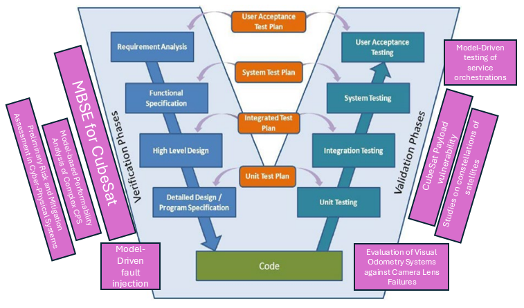 * Model-based Systems Engineering (MBSE) for CubeSat applications. Investigated topic: how to facilitate the analysis of CubeSat systems and constellations through the application of MBSE approaches that derive various simulation artefacts from high-level design models.