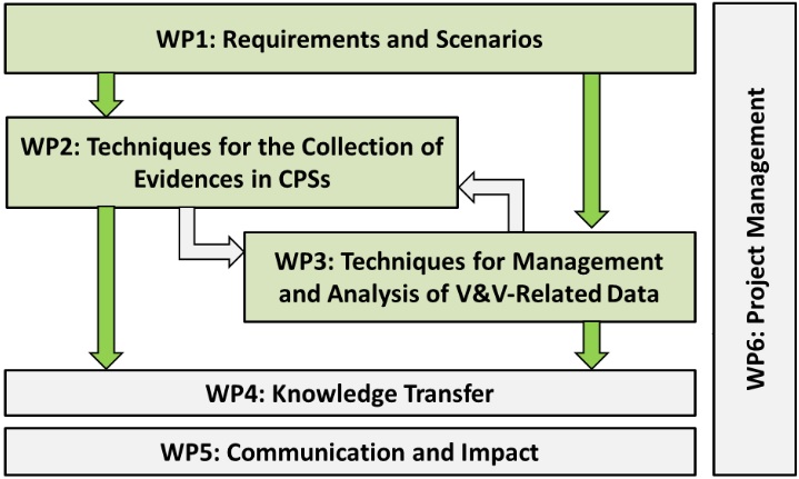 WP2: V&V techniques for collecting evidences on CPSs, covering model-based techniques (such as formal approaches for V&V), experimental techniques (such as robustness testing, fault injection), and hybrid techniques (which tend to combine both approaches).
