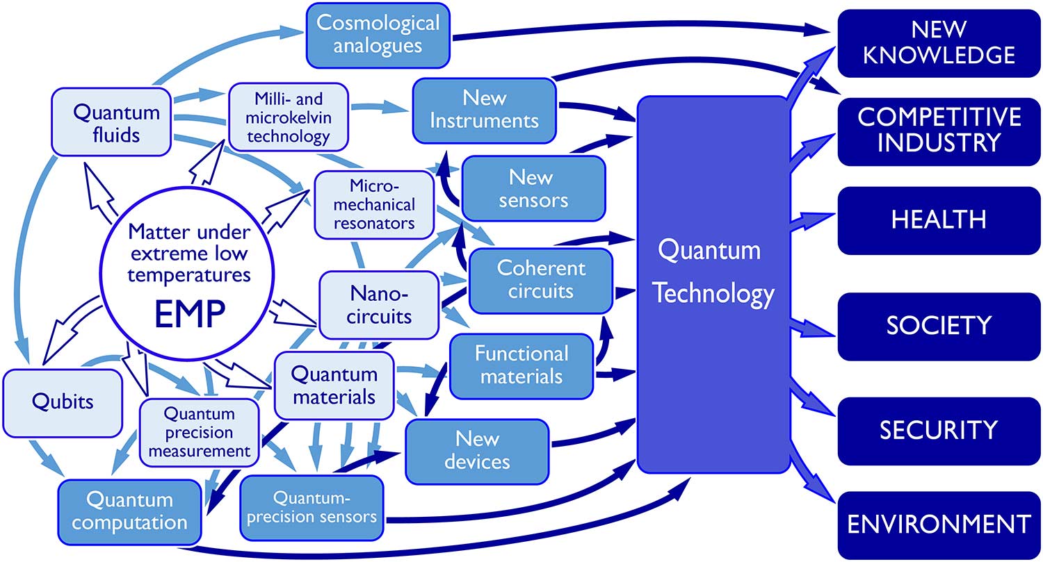 In addition, joint research activities within the EMP have been conducted on all planned topics, which include advancing to even lower temperatures, establishing new thermometry in unchartered territory, exploiting quantum technology for ultrasensitive measuring devices, advancing nanoscience capabilities at ultralow temperatures and probing quantum materials at the lowest temperatures. In this part of the program, new on-chip cooling techniques have been devised and refined to cool nano-devices to the lowest temperatures ever reached (a field where Europe has an established lead). At the same time, on-chip thermometry has been pushed to new frontiers, achieving record speed and accuracy. Several new devices based on quantum technology have been developed, enabling ultra-sensitive energy detection, magnetic flux measurement and amplification at the quantum limit to name just a few.