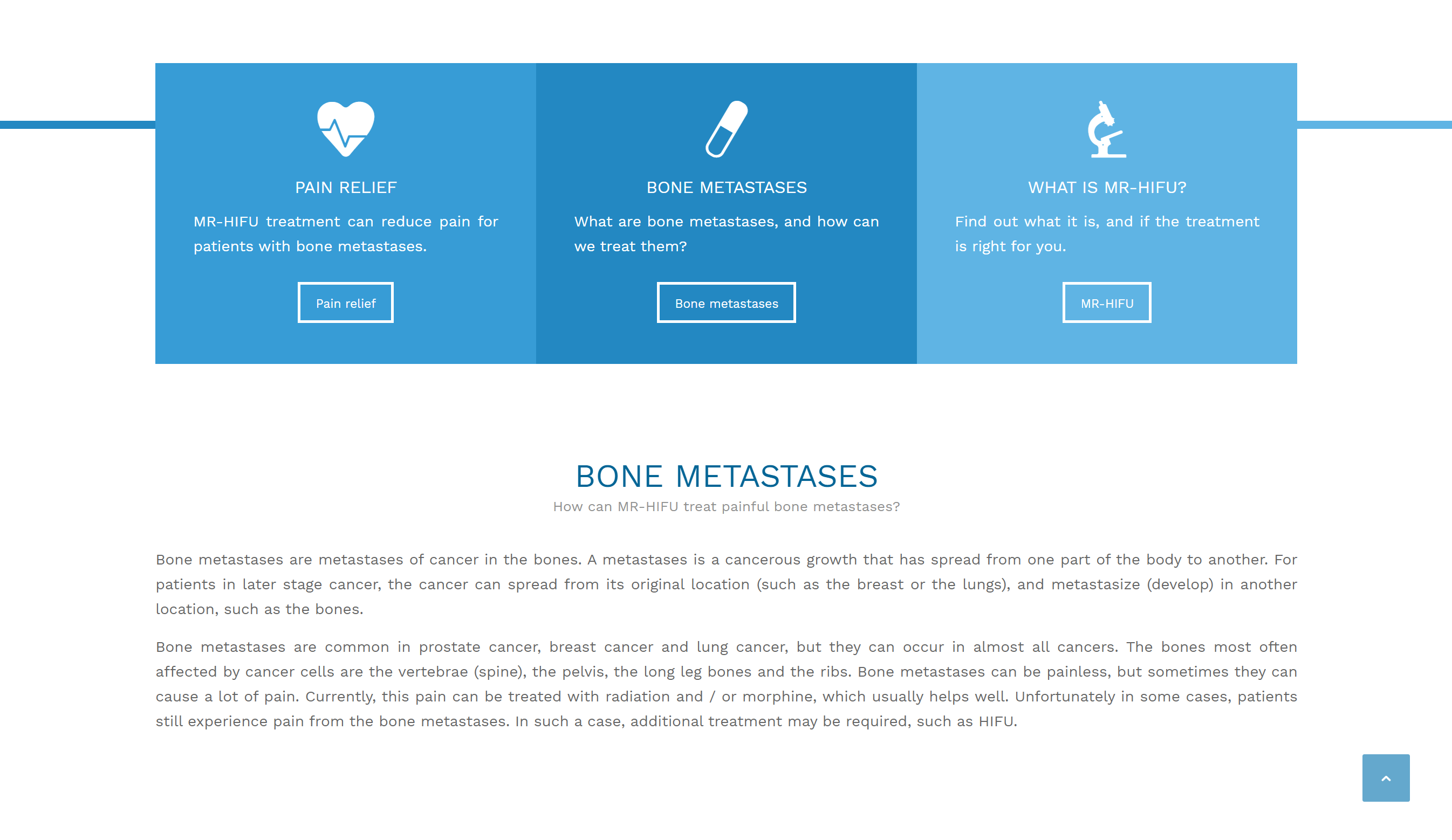 - Raise awareness and acceptance of MR-HIFU as a treatment option for pain palliation amongst patients, care professionals and informal carers (WP6).