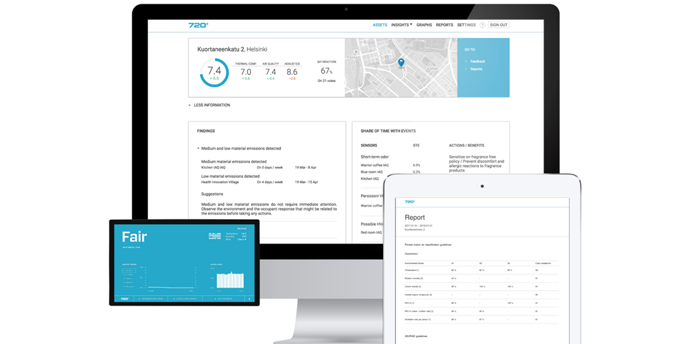 - Improved value offering: In addition to real-time IEQ issue detection and analysis, 720° can start providing automated IEQ improvement through BMS systems and the proprietary API.
