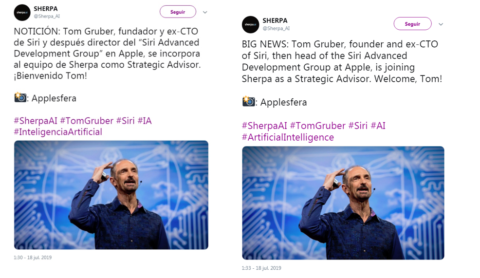 The incorporation of key figures in the field of intelligent personal assistants, such as Tom Gruber, Johana Hoffman and Celestino Garcia will multiply the impact of the communication and promotion activities and will allow us to bring closer positions with new partners and potential clients.