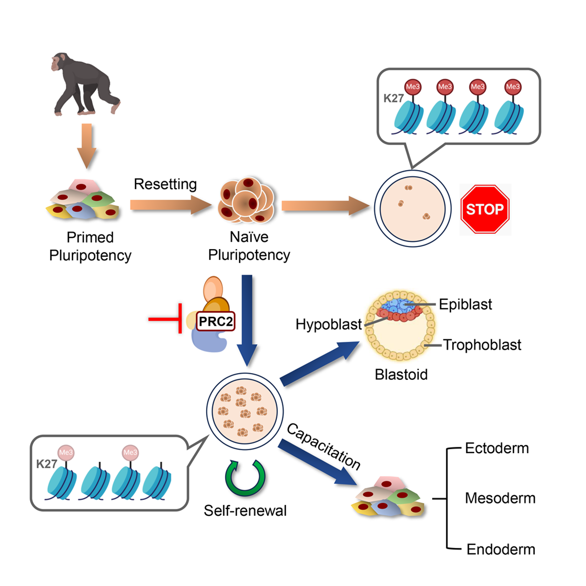 In the fourth period we completed the characterisation of naive pluripotent stem cells from chimpanzee, demonstrating that they are competent to form early embryo-like structures.