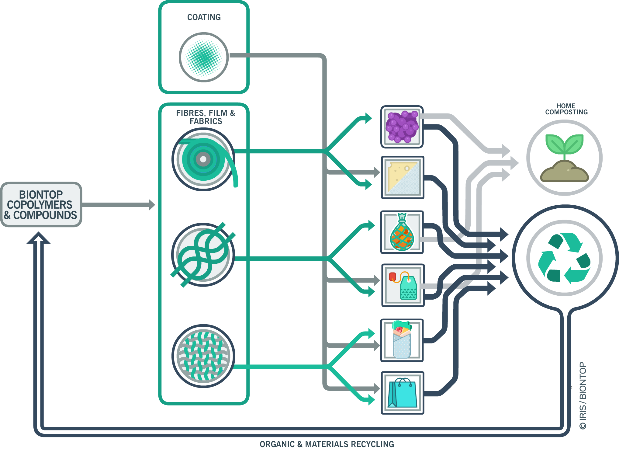 Films from recycled BIONTOP formulations were successfully produced. The materials look, behave and are processable very similar to the virgin ones. The mechanical properties are comparable with the virgin materials. 100% based recycled BIONTOP films were successfully welded into secondary packaging bags.