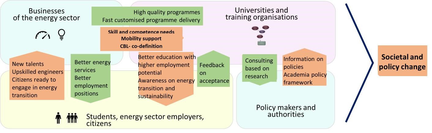 The energy transition will benefit society at large reducing pollution and ensuring a clean environment, but it will also imply a change of mindset, a change in well-established habits, consumption patterns, travelling and working behaviour etc. The energy transition must be social, the engagement of citizens with the energy transition is a critical factor for the success of the green transformation. They need to know about energy transition, learn how to be energy efficient and how to benefit from innovative energy-services and they need training to connect with the labour market.