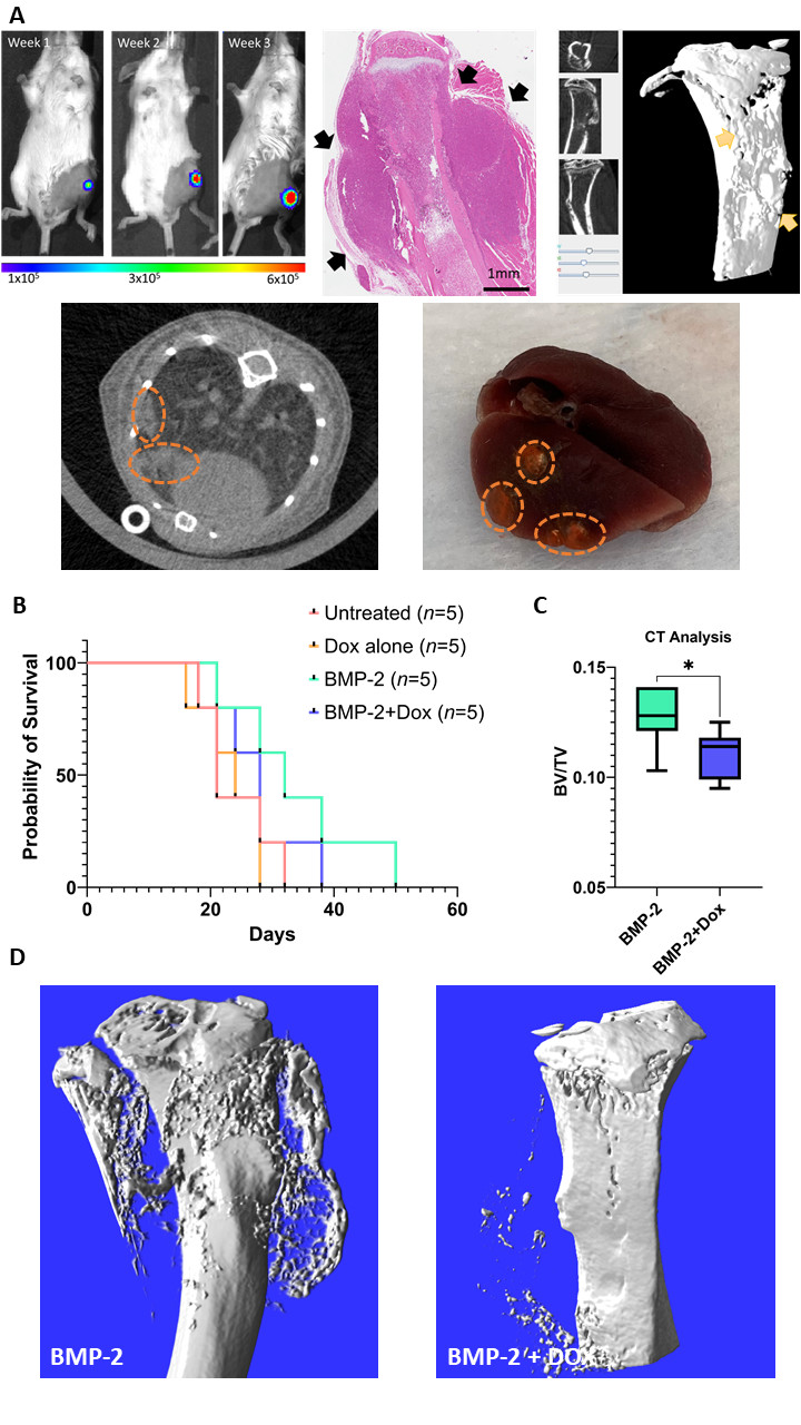 Work package 2: Investigate the tumour promotive/regenerative potential of BMP-2 delivery in an immunocompetent orthotopic model for osteosarcoma.