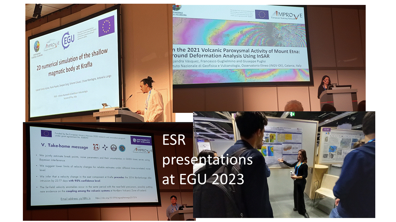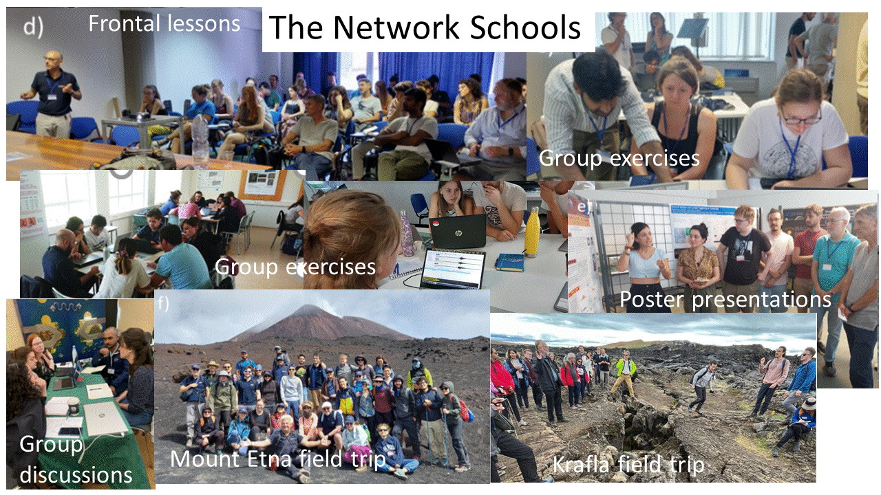 The IMPROVE have also benefited of a tailored network-level training program. Besides the two field campaigns described above and that hold a strong training component, IMPROVE has already organized (Figs. 4, 5) three Network Schools (Iceland – Krafla, June 2022; Ireland, May 2023; Italy – Etna, July 2023) and two Specialized Short Courses (Grenoble, France, January 2023; Bristol, UK, March 2023). In total, 55 external students have attended, besides the 15 IMPROVE ESRs. IMPROVE has also produced four Digital Training Modules on both hard science and complementary skills, for a total of about 8h30’ of video lessons.