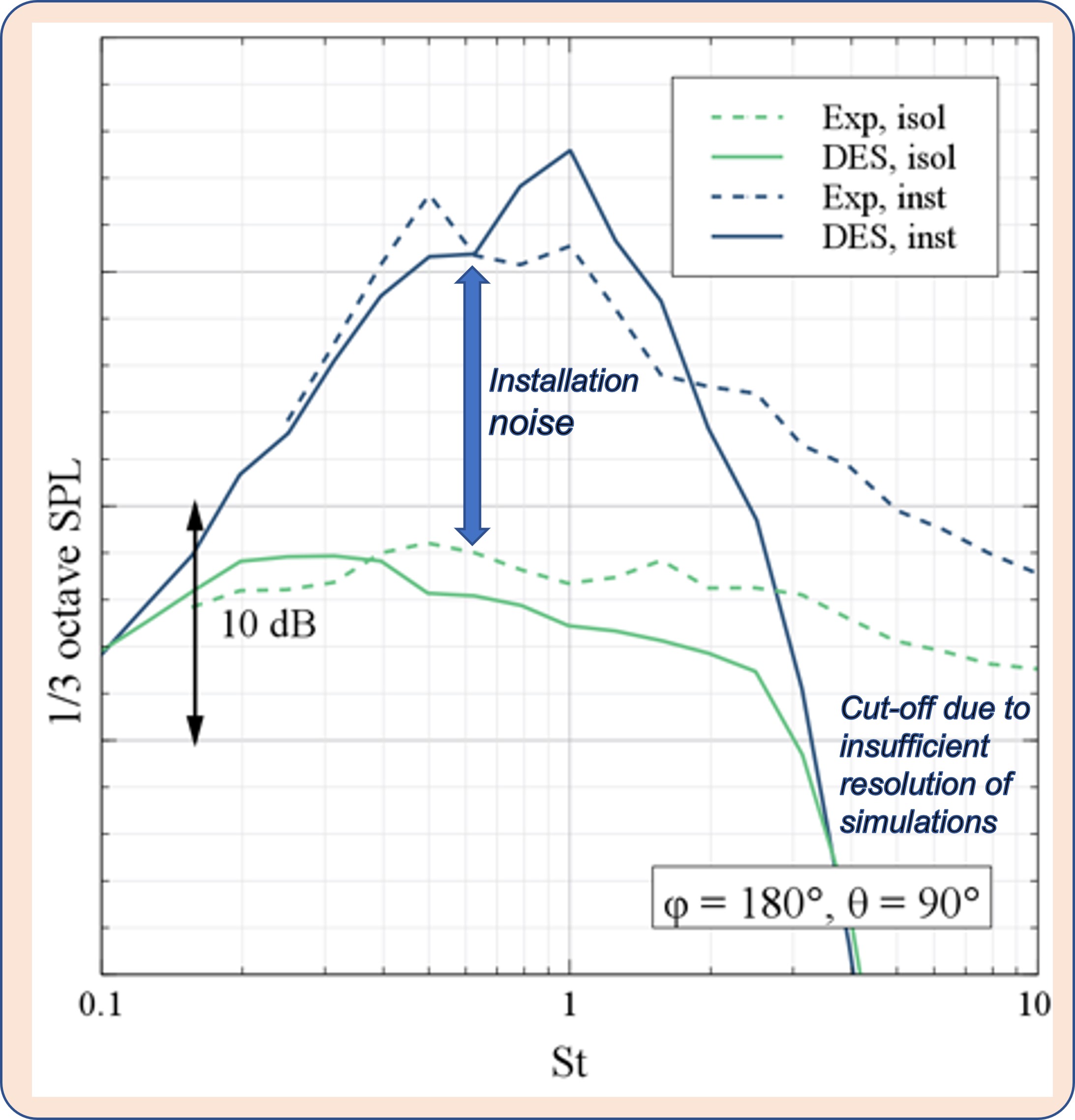 Going beyond the state of the art meant to develop numerical multi-physics (CFD-CAA) methods enabling the integration of acoustic restraints early in the design process of new engines and configuration concepts (Design-to-noise). The use of turbulence-resolving simulations within DJINN advanced the understanding of complex noise source phenomena in general and led to favorable innovative noise-reduction technologies. Further progress has been achieved for shortening wall-clock times for CFD simulations by highly scalable codes The proof of concept is that GPU-based HRLMs resulted in more than 5 times faster computations. As said above, DJINN moved from large-scale testing to HiFi-CFD for higher-TRL demonstration.