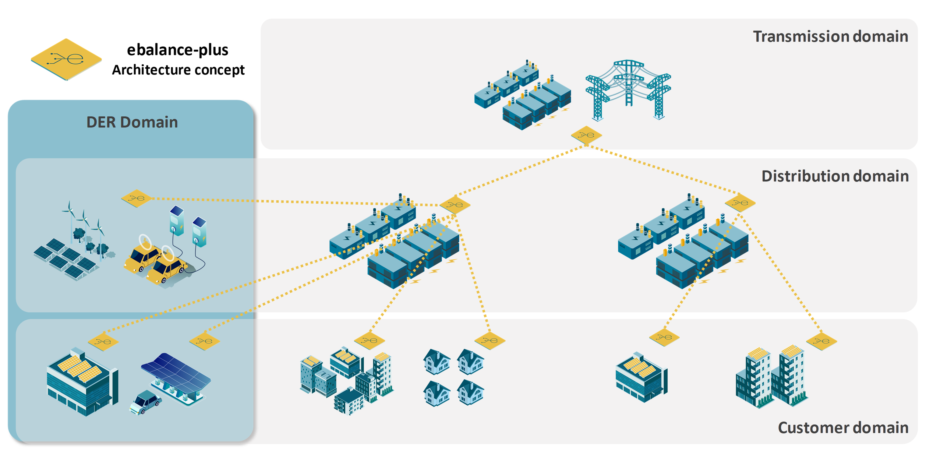 • The distributed management units (grid level) will be based on an Edge setup, reducing the processing power, memory and operations of conventional market solutions. In addition, the cloud approach of ebalance-plus, and the fast DER response will be implemented as software as a service integrated in the corresponding management units (LVGMU; DERMU and MVGMU)