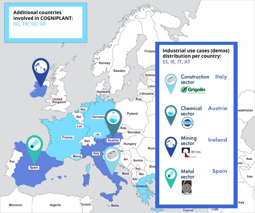 The project is being performed in four SPIRE industries: A chemical plant in Austria, an aluminum refinery in Ireland, a concrete production plant in Italy and a metal manufacturer in Spain.