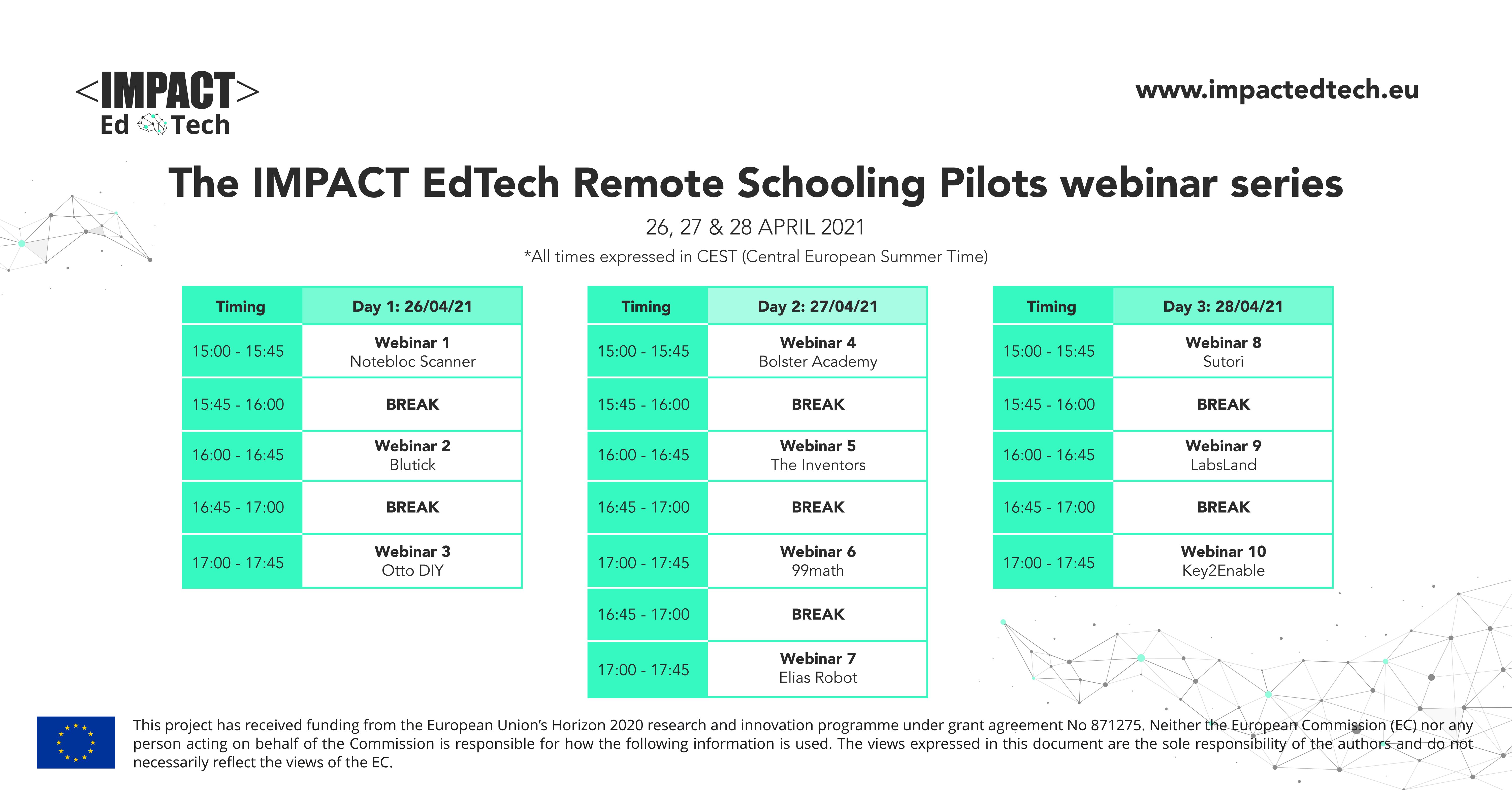 • 30+ public events have been organised: 10 info days, 2 info corners, and 21 webinars. Visit the IMPACT EdTech website or YouTube: https://www.youtube.com/channel/UCIOQoA-ZfMxthBICI1hlDww(se abrirá en una nueva ventana)