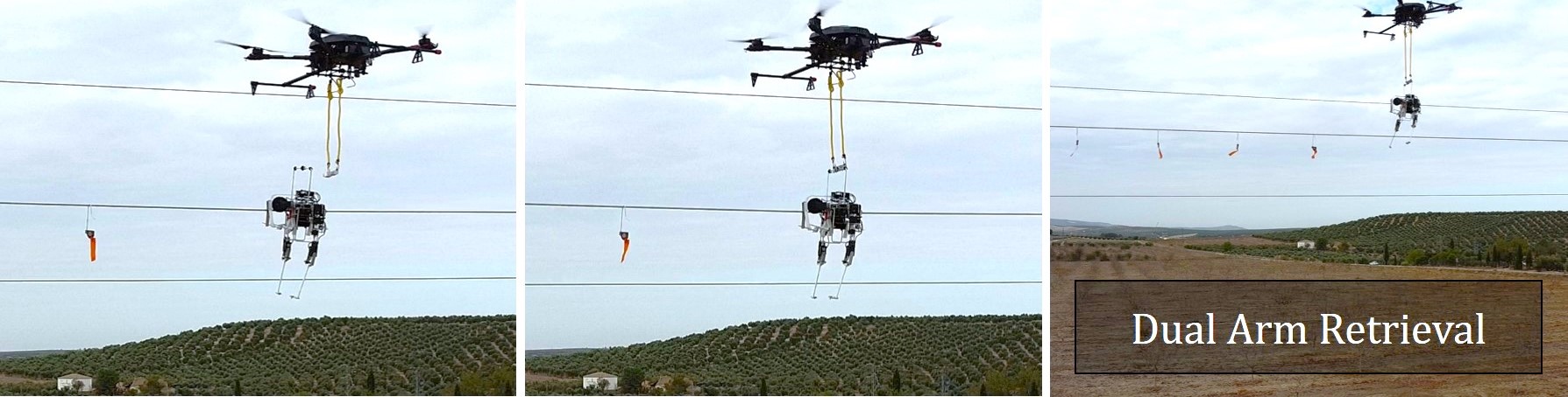 In Aerial Robotic Manipulation, AERIAL-CORE developed dexterous aerial manipulation for the installation of devices such as helicoidal bird diverters, cable-suspended dual-arm aerial manipulators and high voltage-resistant aerial manipulators. Two different approaches were developed: manipulation while flying and after landing or perching on the electrical tethers.