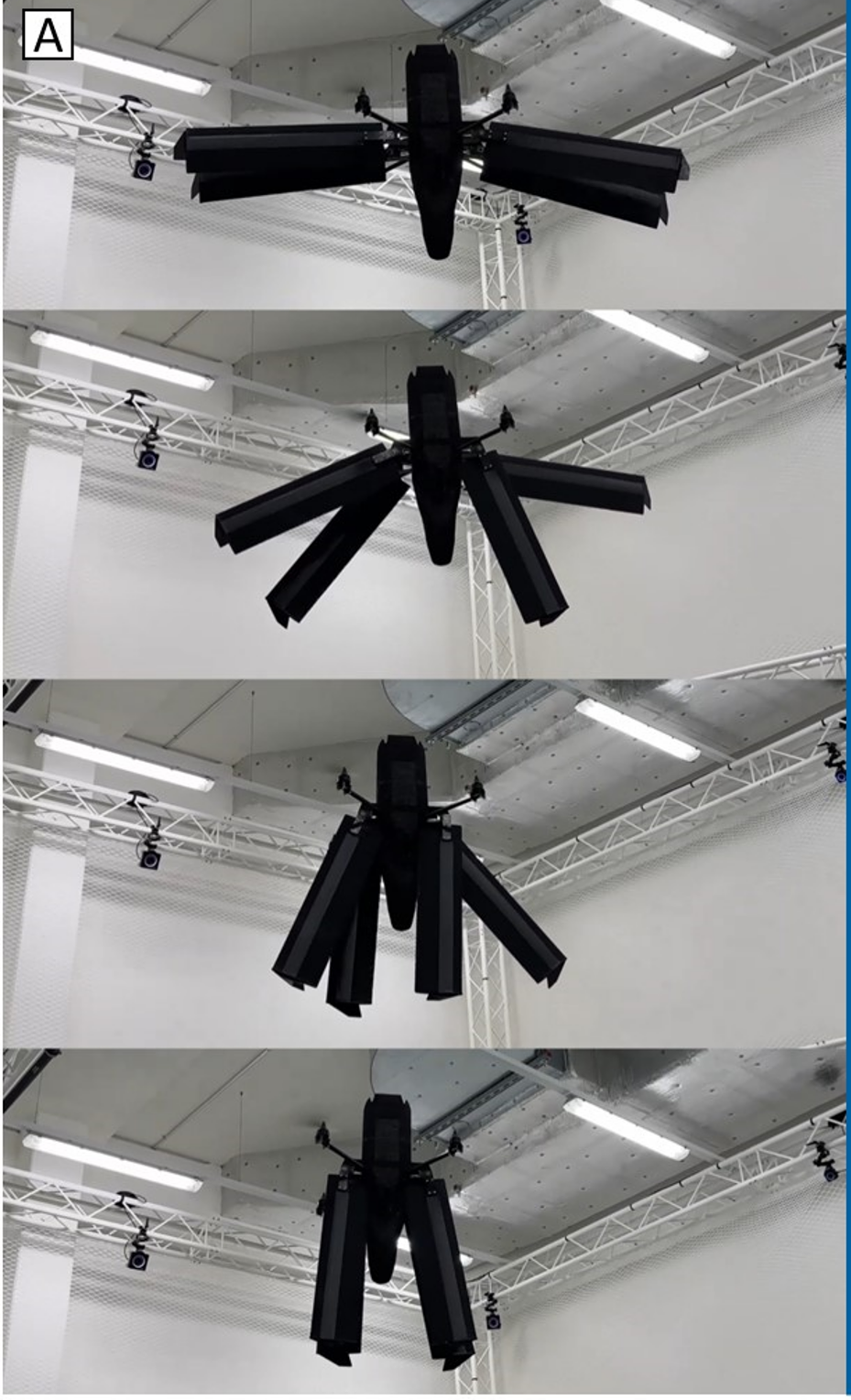 In Morphing, AERIAL-CORE developed wing morphing for manoeuvrability and wind energy harvesting, vertical pole perching and multi-modal locomotion, omnidirectional efficient multi-rotor design with a minimal number of actuators, mechanisms for perching and locomotion along a cable, and hybrid efficient fixed-flapping UAV.