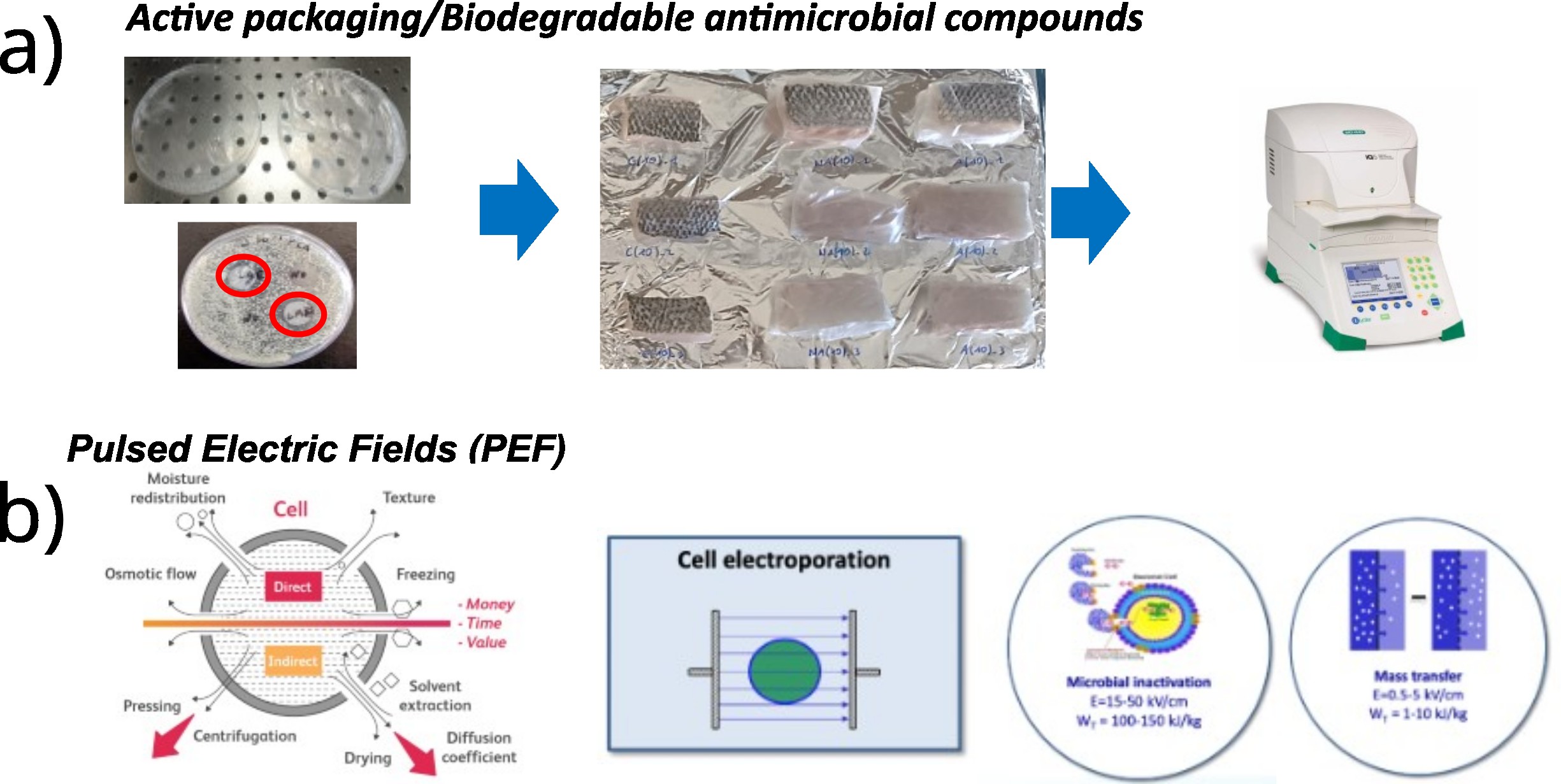 - Blue Growth with novel processing methods tested with a variety of seafood, and the improvement in the shelf life.