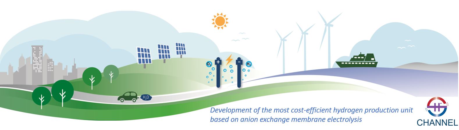 CHANNEL project aimed at developing a cost-efficient 2kW AEM water electrolyser stack for producing high-quality, low-cost green hydrogen from renewable energy sources. This aim included the development of each stack component from the non-platinum group metal (non-PGM) based catalysts to balance of the plant (BoP). Thus, the project had as its objectives the (i) optimisation and utilisation of advanced AEM and ionomers; (ii) development of cost-efficient and stable catalysts for high-performance electrodes; (iii) development of system models guiding the stack design and integration of components; (iv) market analysis, cost and performance assessment from experimental results based on the CHANNEL 2kW stack prototype.