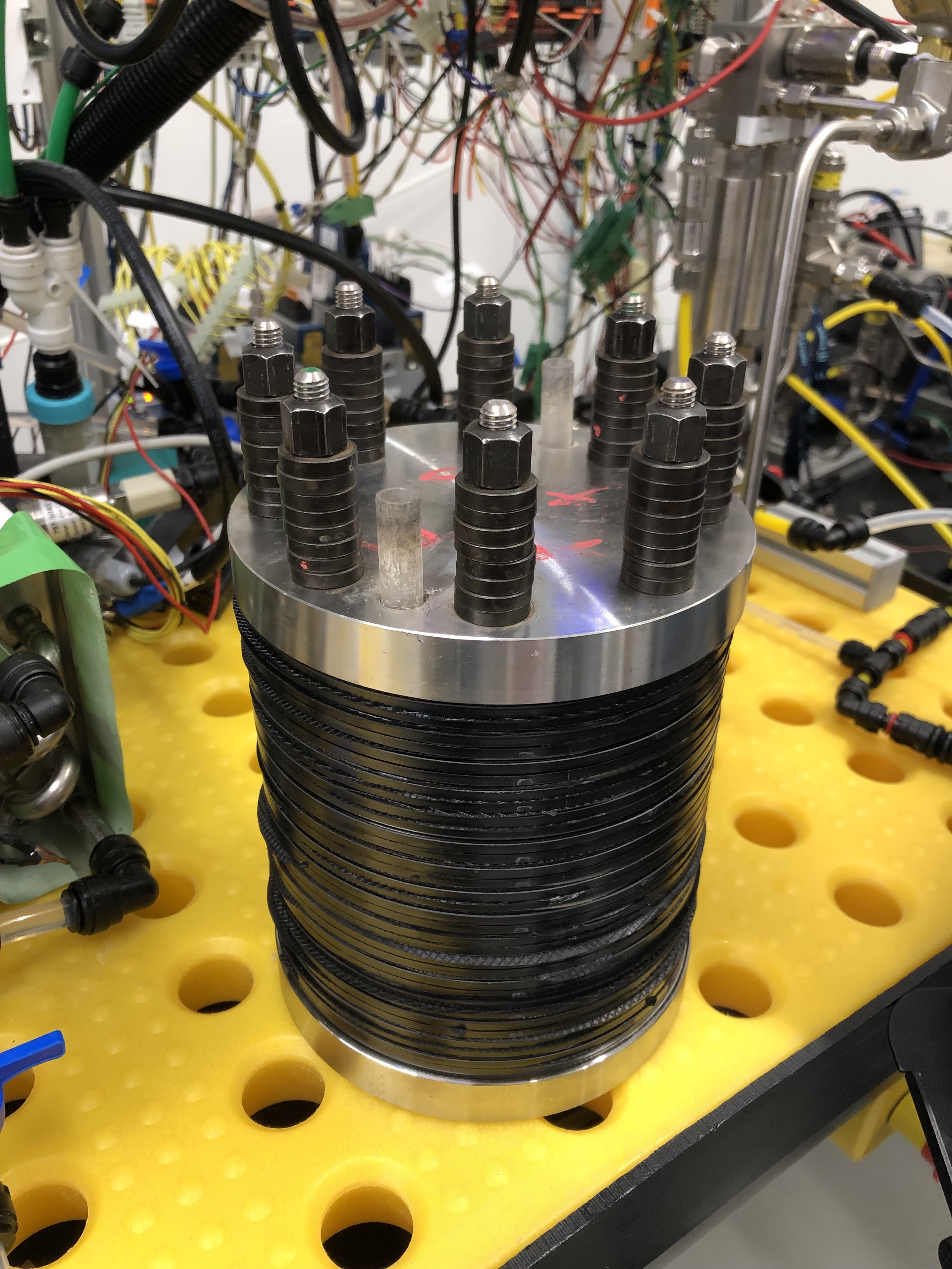 Guided by modelling work CHANNEL designed a prototype 2kW stack consisting of 16 cells with an active area of 64 cm2. The design is flexible to use some different approaches for the flow fields, sealings, electrodes and MEAs. The BoP for the final testing was also designed and optimized, including a visual interface to facilitate monitoring and data acquisition with high accuracy.