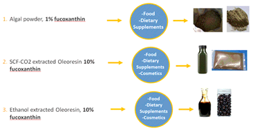 At the very state-of-the-art, nutraceuticals have been highlighted as a new paradigm of proactive and natural medicine which shades the frontier between pharmaceuticals and food. Fucoxanthin is a light‐harvesting non-toxic carotenoid pigment found in macroalgae and microalgae with recognised nutraceutical anti-obesity and antidiabetic effects, with evidence that it supports weight loss by speeding up metabolism and stimulating the body’s natural biochemical ability to burn fat. However, as market needs grow, its conventional production by seaweed will become redundant as the method is unsustainable, expensive and seasonal (intermittent). AlgaHealth’s solution using microalgae, however in the microalgae field there is no one size fits all. To be successful, one must optimize and perfectly balance three corners of a “magic triangle”: (1) algae species; (2) cultivation technology/systems and; (3) geographic location. To overcome current barriers and achieve the complete ‘magic triangle’, AlgaHealth has developed an innovative approach in each step (microalgae strain geographical selection, cultivation and green/benign upstream and downstream processing) of the fucoxanthin production line. ThereforAlgaHealth is uniquely placed in the nutraceutical and food supplement market to replace macroalgae(seaweed) production with their sustainable, clean, green and cost effect innovation.