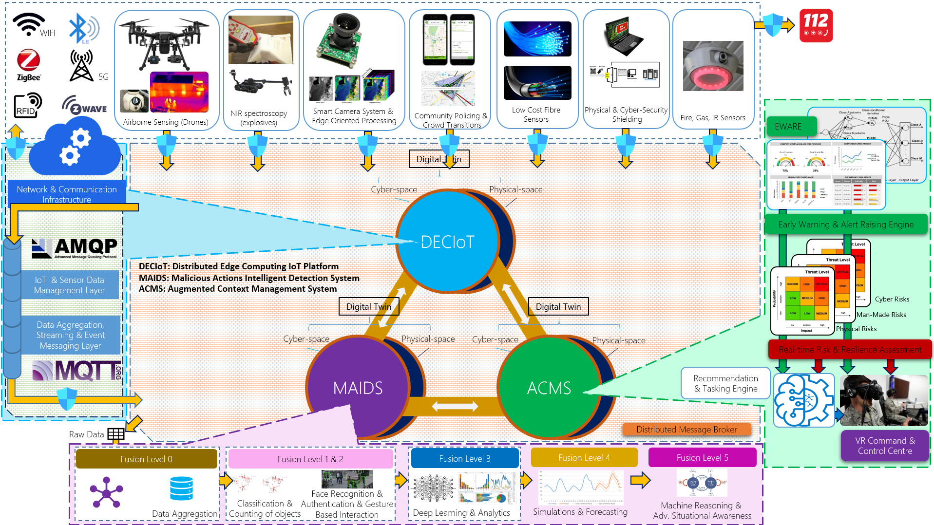 • Complement legacy monitoring systems with the adaptation of state of the art and beyond, low-cost surveillance technologies and solutions that enhance Smart City preparedness and defense capability in both cyber and physical space.