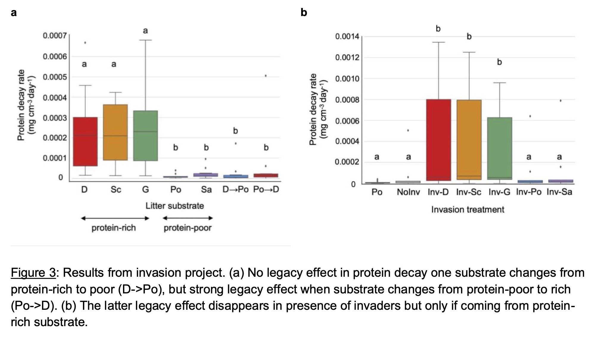 The MSCA Fellow found that legacy effects were evident with substrate change for native communities differing in composition. Our simulations demonstrate that substrate quality changes associated with global change can lead to legacy effects on substrate degradation, but that such legacy effects occur if substrate inputs shift to higher protein content and if invasion is low.