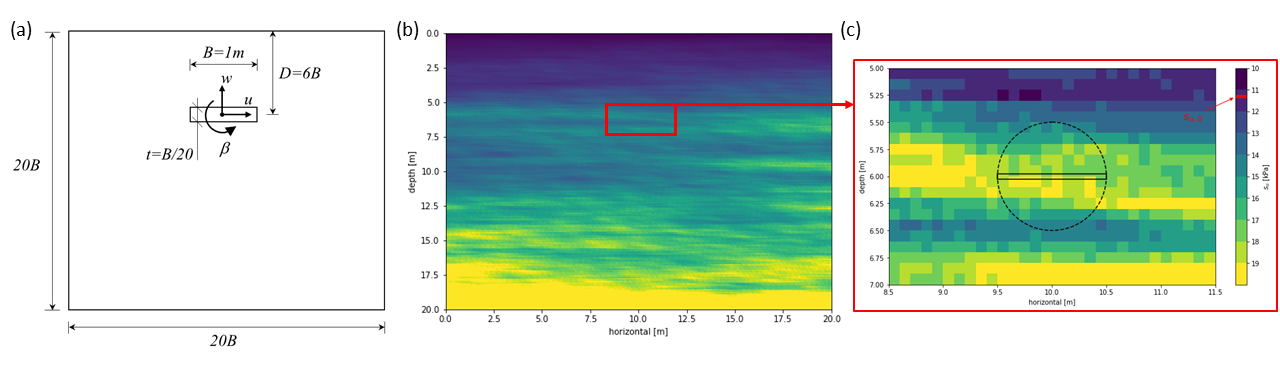 For plate anchors, known for their efficiency and ease of installation, deterministic solutions assume homogeneous soil properties, overlooking variations across the deposit. This is significant for floating wind turbine projects covering large spatial extents. The study employed the Polynomial Chaos Expansion (PCE) to assess a plate anchor's holding capacity in randomly variable soil under general loading conditions.