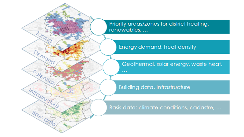 Based on these insights, the cities aligned their quantitative vision of future demand with local supply conditions, taking into account issues such as “heat demand density”, the availability of infrastructure and on site energy potentials and energy generation capabilities. This resulted in spatially differentiated “Heating and Cooling Plans” (with a “WHAT map” and ideally also a “WHEN map”), which have two main energy systems in common: (1) District heating grids to be created, expanded or densified in dense areas, and (2) heat pumps (in buildings or in micro-grids) for the less dense areas.