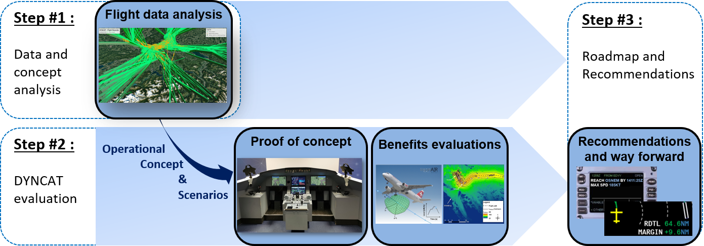 • DYNCAT derived measures to be implemented in short term (mainly on-board procedures) and mid-term (mainly new on-board system functionalities), identified the necessary enablers such as new technological functions (supportive tools, data exchange) and regulatory changes to allow improved airborne procedures.